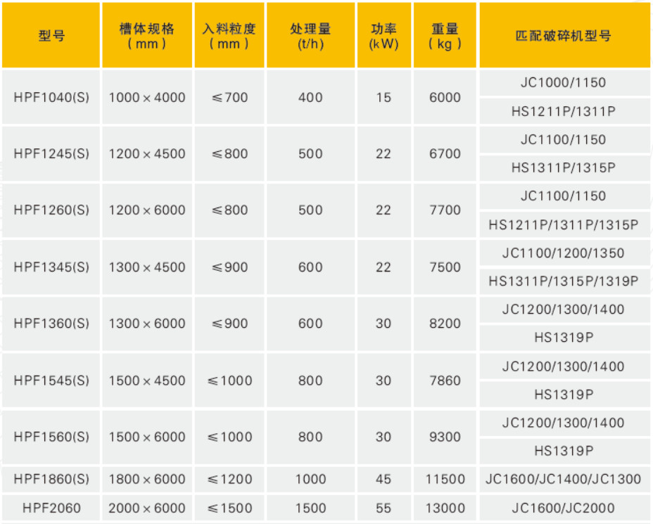 HPF重型振動給料機,適用于向初級顎式破碎機、初級反擊破碎機和初級錘式破碎機等進(jìn)行給料,廣泛應(yīng)用于石料、建材和冶金礦山行業(yè)。HPF型給料機高度較低, 布置空間小, 其最大處理量達(dá)1500TPH,最大給料粒度達(dá)1.5m,標(biāo)準(zhǔn)給料斗容量25~45m ;